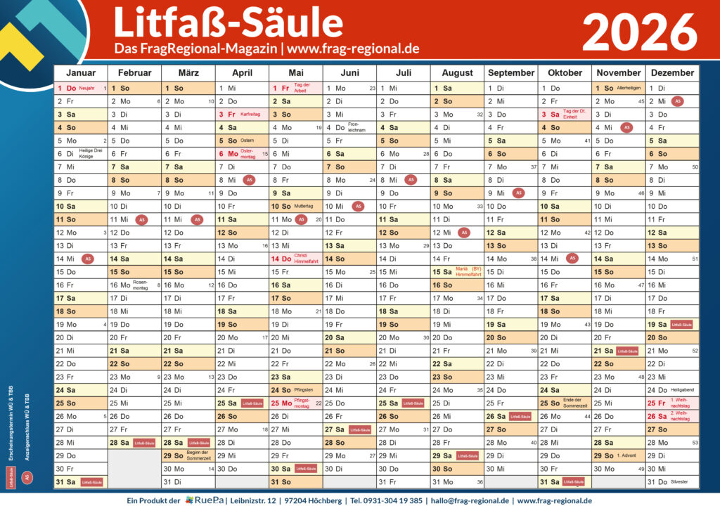 Alle Veranstaltungen werden je nach Ort in der Litfaß-Säule Würzburg oder der Litfaß-Säule Tauberbischofsheim und zusätzlich auf der regionalen Online-Plattform FragRegional veröffentlicht.
